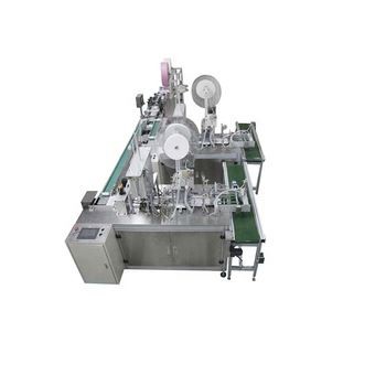 The automatic Disposable Non Woven Face Mask Making machine including one mask body machine, one shunt machine, one ear band welding machine. When the machine start, the mask body machine produces the face mask then transport to the conveyor On the splitter, the mask is transferred from the splitter to the ear band welding machine to weld the ear band part to complete a complete mask product. The whole process realizes a fully automated production process without manual operation, that is, one body machine and two ears Connected with a machine, the output can reach 100-120 pieces / minute.